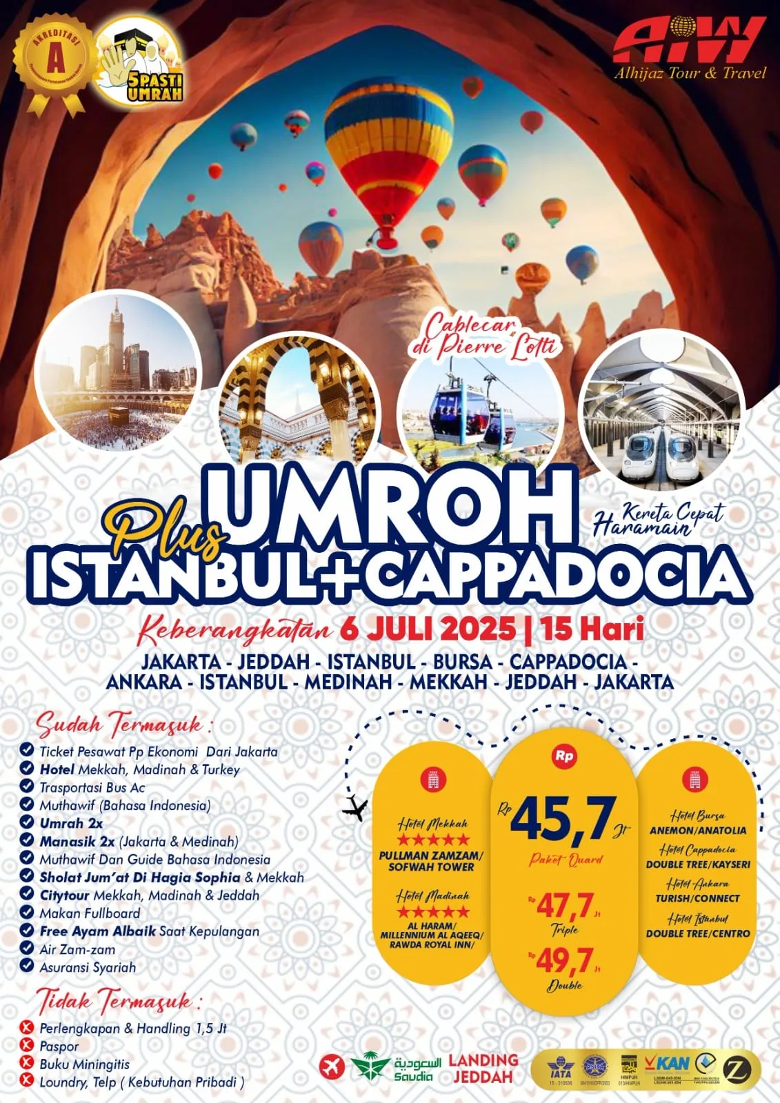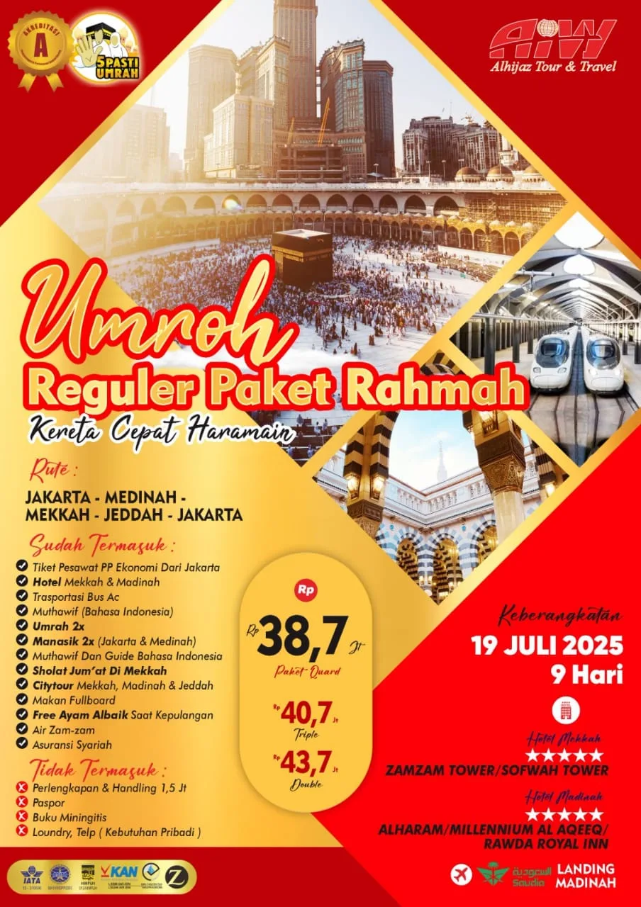 Dengan bangga kami PT Al Hijaz Indowisata Tour & Travel biro per jalanan wisata, Haji & Umrah menyampaikan terima kasih kepada anda yang telah memberi kepercayaan kepada kami. PT Alhijaz Indowisata bekerjasama dengan beberapa Hotel di Saudi Arabia dari Bintang 3 sampai Bintang 5 di Madinah dan Mekah. PT Alhijaz Indowisata juga bekerjasama dengan Perusahaan-perusahaan resmi di Saudi Arabia dalam Transportasi dan edukasi visa Umroh.